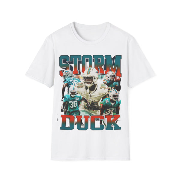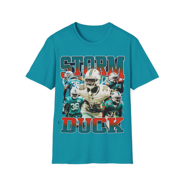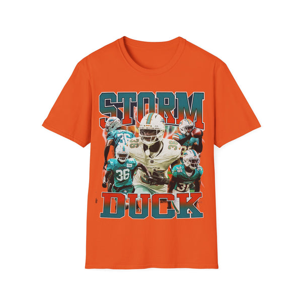 Stand out from the crowd with this unique Storm Duck graphic tee, celebrating one of the most exciting names in football. Designed with bold graphics and a clean fit, this shirt is perfect for fans who want to rep the Dolphins in style while showcasing their support for Storm Duck.